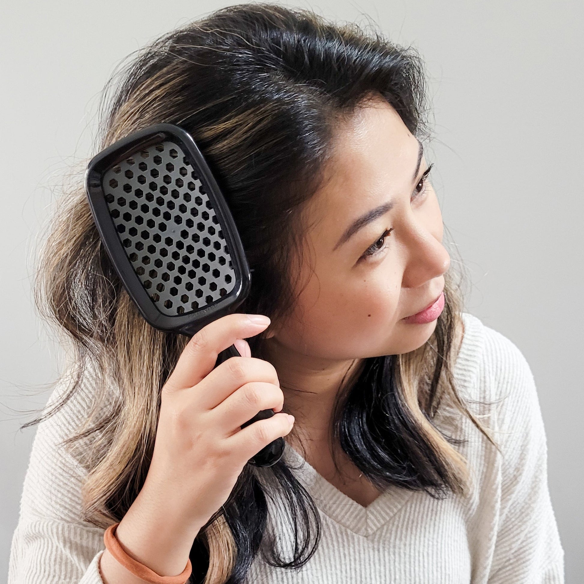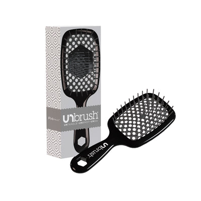 UNbrush® - Moonlight Grey gently yet thoroughly extracts knots and tangles from even the most unruly hair, painlessly and effortlessly. Featuring the perfect blend of 105 dual length bristles, combined with an ultralight high performance handle, UNbrush® helps reduce styling time and prevents hair from catching. Great for wet or dry hair.